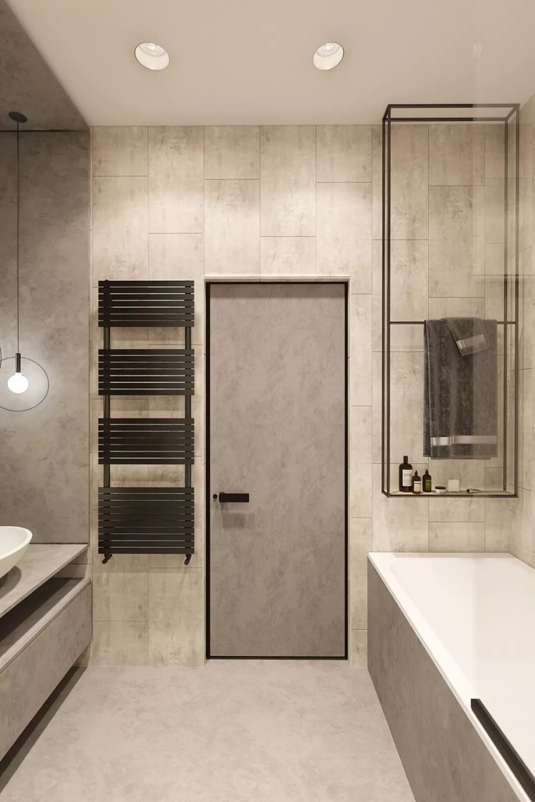 Center shaft door at first glance nothing special, but after opening it presents a completely different perception, because the door of the upper and lower shaft set at the hinge, push open just after the center can be stuck in the middle, showing an unusual way to open the door, so that the door is more flexible.