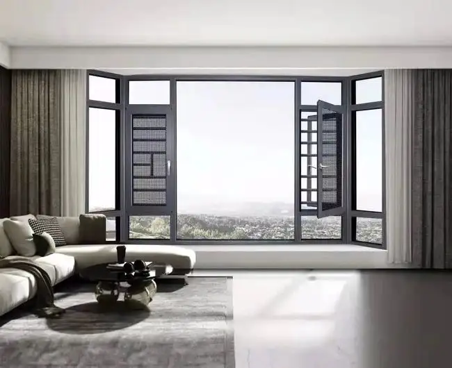 Casement windows are equipped with hinges on one side of the sash, which are connected to the window frame. There are single, double sash, can be opened inside or outside. Casement window separation flexibility, open the fan only occupies a part of the window can make a variety of lines of effect, good ventilation, open and bright.
