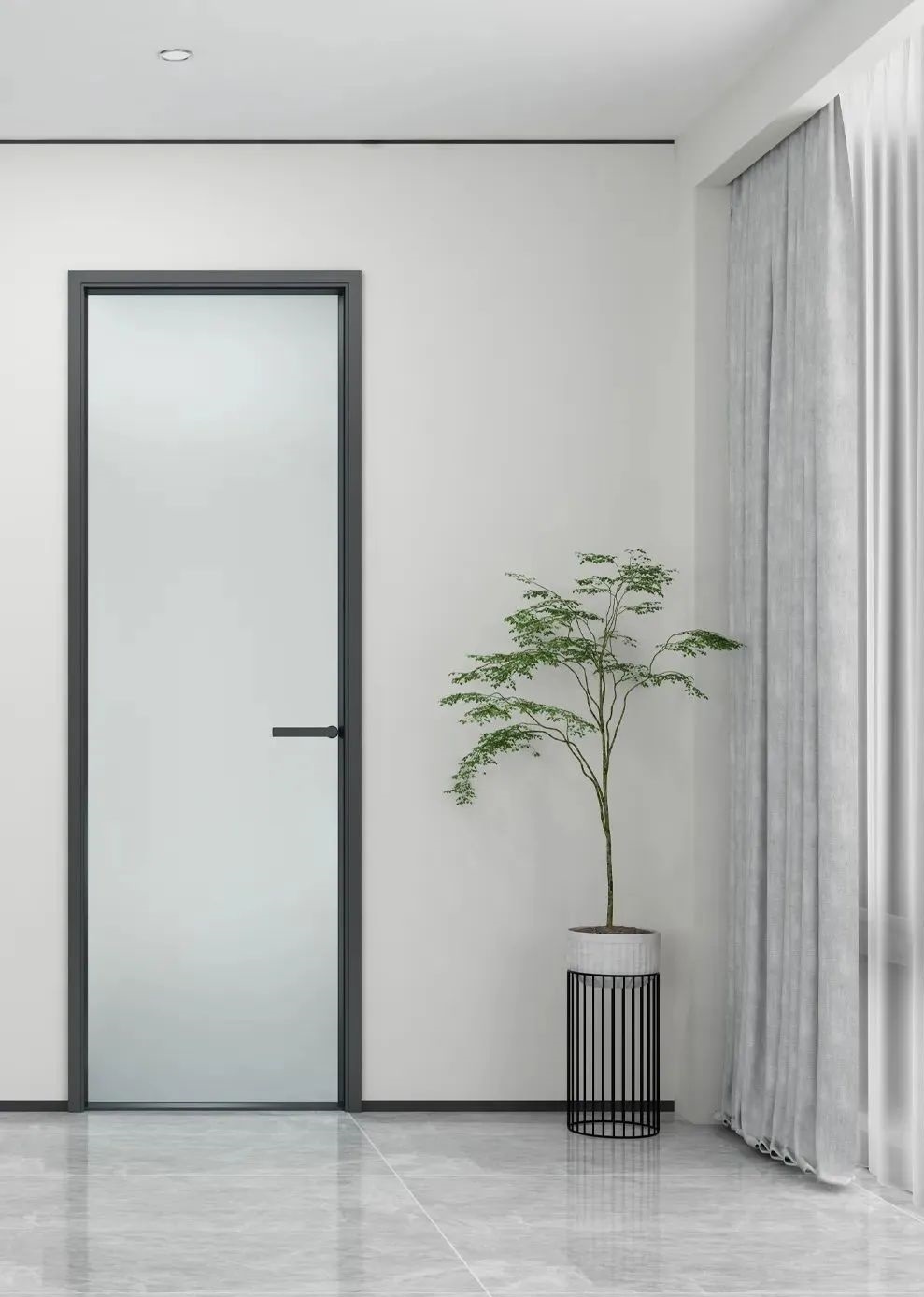 aluminum alloy casement door, with a thin narrow + hidden heaven and earth hinge design, equipped with a large piece of high-transparency glass, presenting a 9mm extremely narrow visible surface, ultra-white translucent glass, aluminum frames accounted for breaking the boundaries of the field of vision, the simplicity to achieve the ultimate, to restore the essence of life’s most real and simple beauty.